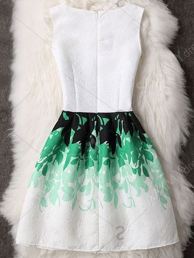Leaves Pattern Waisted Zippered Dress